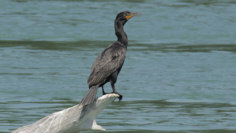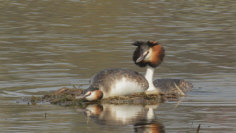 The great crested grebe (Podiceps cristatus) is common at Østensjøvannet. During mating, the male literally walks all over the female.